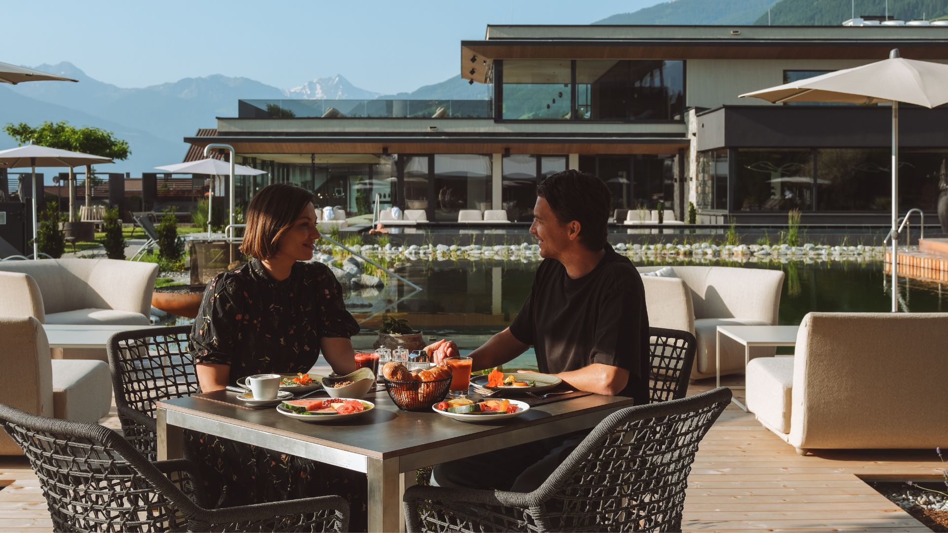 Das Gute liegt so nah! Zum Frühstück gibt’s bei uns Brot aus der Dorfbäckerei, hausgemachte Marmeladen, Eier vom Gartnerhof in Uderns, Kräuter aus dem eigenen Garten, sowie Käsespezialitäten, Heumilch und Blütenhonig aus der Region. Kaffee und Prosecco gibt’s sowieso und eine eigene Station für frischgepresste Säfte gibt’s auch.